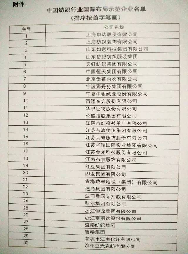 會上,中國紡織工業(yè)聯(lián)合會原副會長許坤元,副會長兼秘書長高勇,副會長楊紀(jì)朝,顧問張延愷,會長助理、中國國際貿(mào)促會紡織行業(yè)分會常務(wù)副會長徐迎新對“中國紡織行業(yè)國際布局示范企業(yè)”進(jìn)行了表彰,具體名單如下: