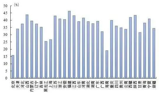 圖3 2020年全國31個省份第二產(chǎn)業(yè)占比