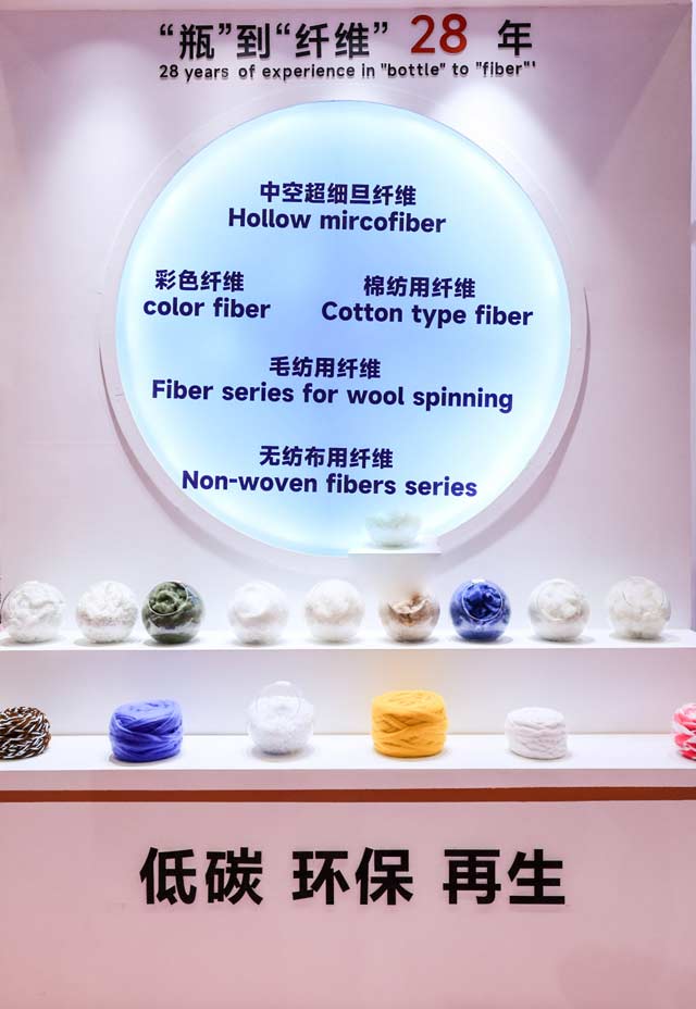 “綠色化、循環化是紡織行業發展的大勢所趨,借助本次展會我們將在長三角市場廣泛傳遞公司的可持續發展理念。”嘉興市富達化學纖維廠副總經理陳劍翔說道。展會現場,公司將展示紡紗用纖維、無紡布用纖維、中空纖維、雙組份復合纖維、靜電植絨絲束等五大系列產品。據了解,公司專業從事“瓶”到“纖維”近30年,目前已擁有7條具有國際先進水平的再生滌綸生產流水線,4條復合紡纖維生產線,年產11萬噸滌綸短纖,4萬噸復合短纖和1萬噸靜電植絨用絲束,年回收處理5萬噸聚酯瓶片。