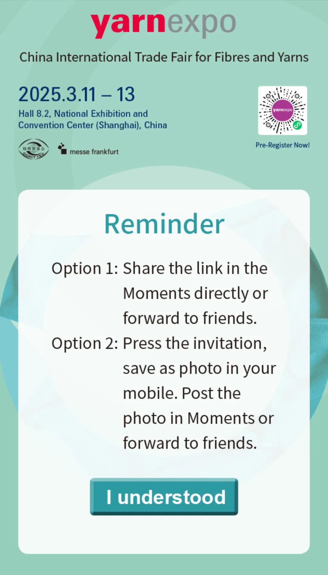 請點擊“我知道了”按鈕,成生請柬。長按生成頁面保存圖片轉(zhuǎn)發(fā),或直接轉(zhuǎn)發(fā)至朋友圈。